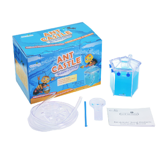 Shaped as Pentagon Castle, with a feeder, pipe fittings and other accessories, If you connect several castles together to raise a large group of ants and a queen ant is in the group, you can observe the process of ovipositing and hatching.