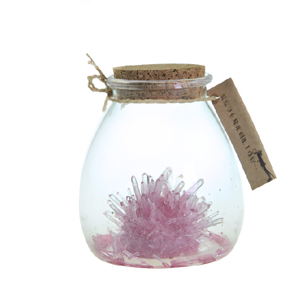 Content: Bag of crystal growing powder, Crystal seed, Bottle, Cork, Card, Hemp string, Muddler, Manual